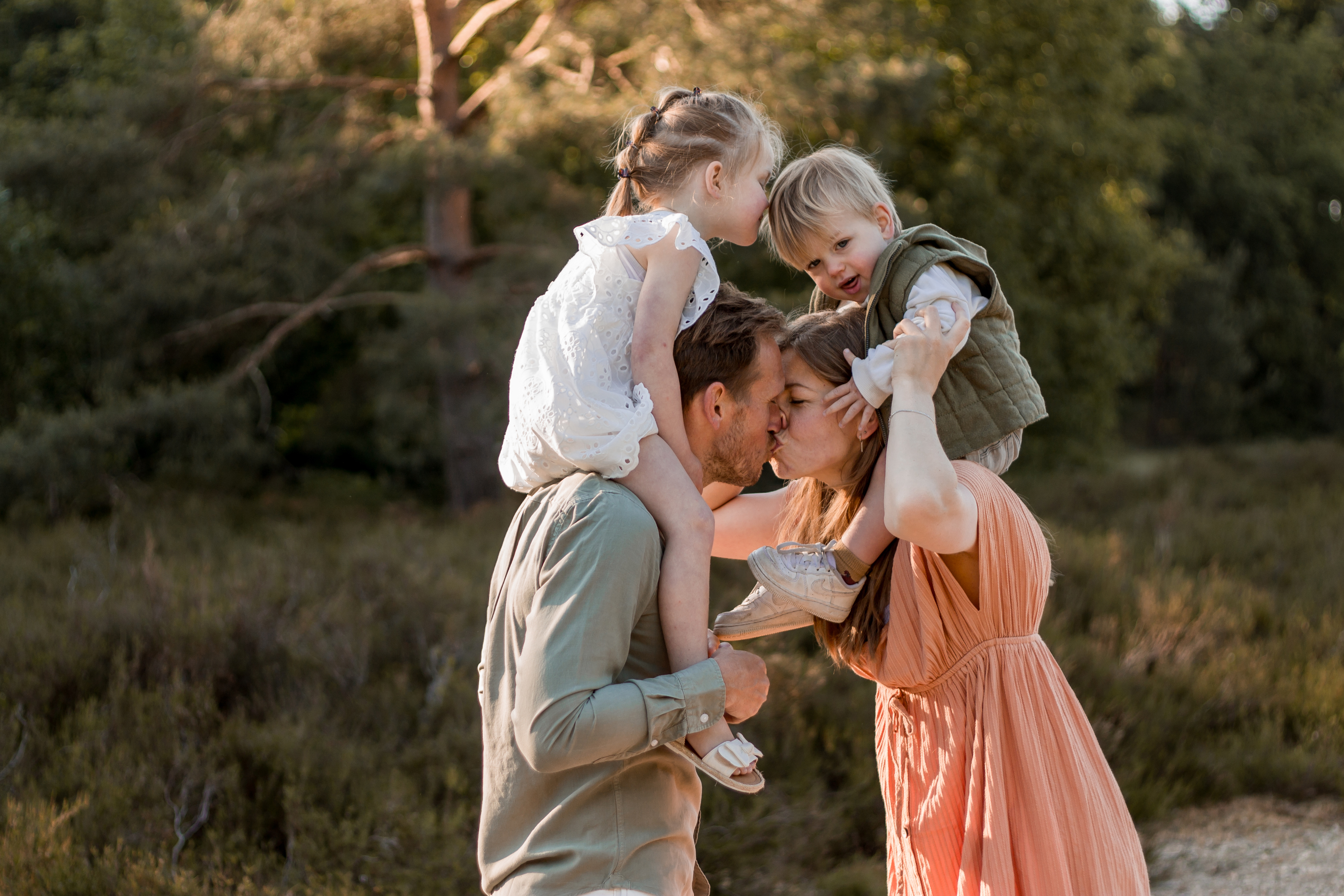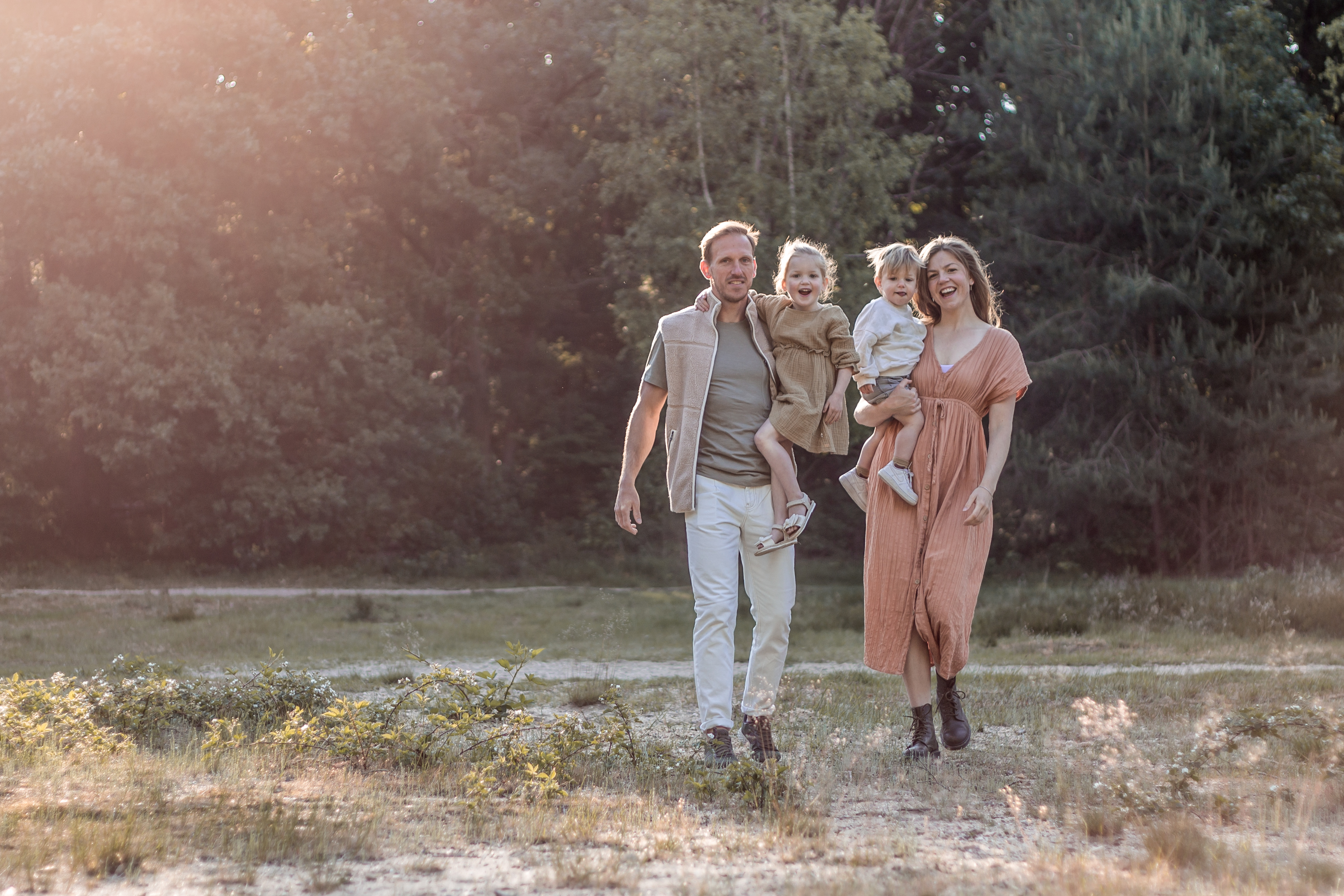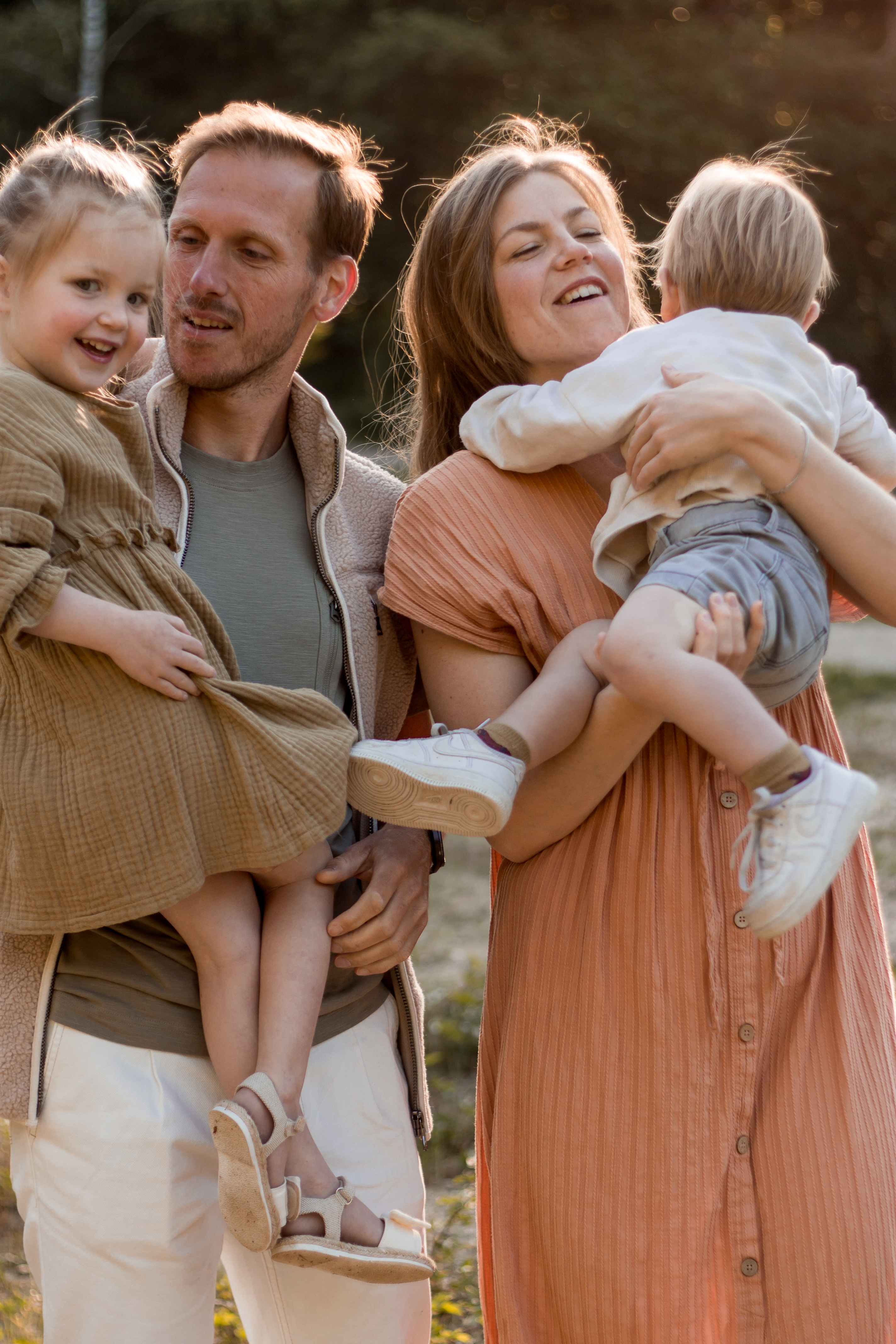 Deze lieve mensen mocht ik in het vroege ochtendzonnetje fotograferen. Zo konden we optimaal gebruik maken van het prachtige ‘gouden uurtje’. Twee kindjes die aanvankelijk de kat uit de boom keken werden helemaal ontspannen naarmate er spelletjes werden gespeeld en er lekker gelopen, gerend, geknuffeld en gespeeld mocht worden.