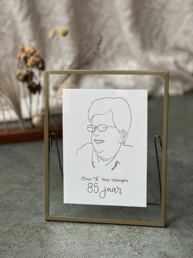 Hoe leuk of mooi is het om een gepersonaliseerde kaart te ontvangen, om neer te zetten of op te hangen. Aan de hand van een foto en/of meer informatie over de persoon of gebeurtenis creëer ik digitaal een gepersonaliseerde kaart. Dit kan een lijntekening zijn, maar ook een mooie (bijbel)tekst of persoonlijke boodschap.